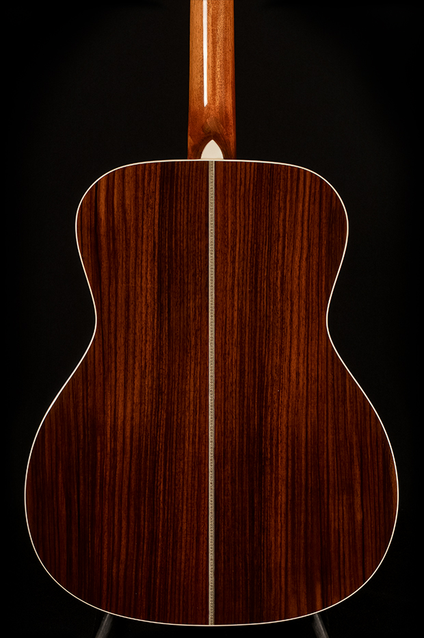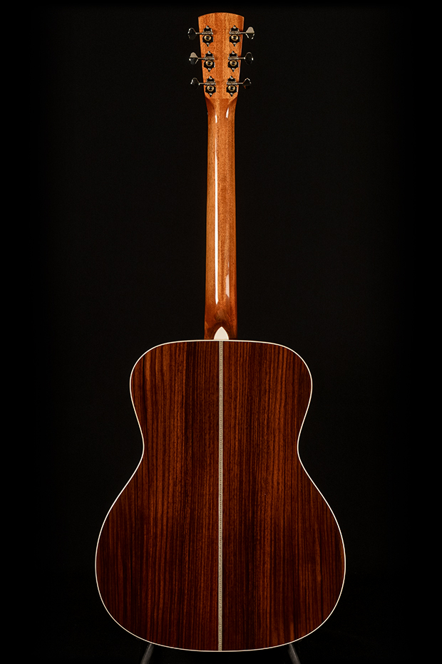 Crafted with a select solid spruce top, handcarved X-bracing, choice solid rosewood back and sides, with herringbone top trim and a traditional dovetail neck joint.