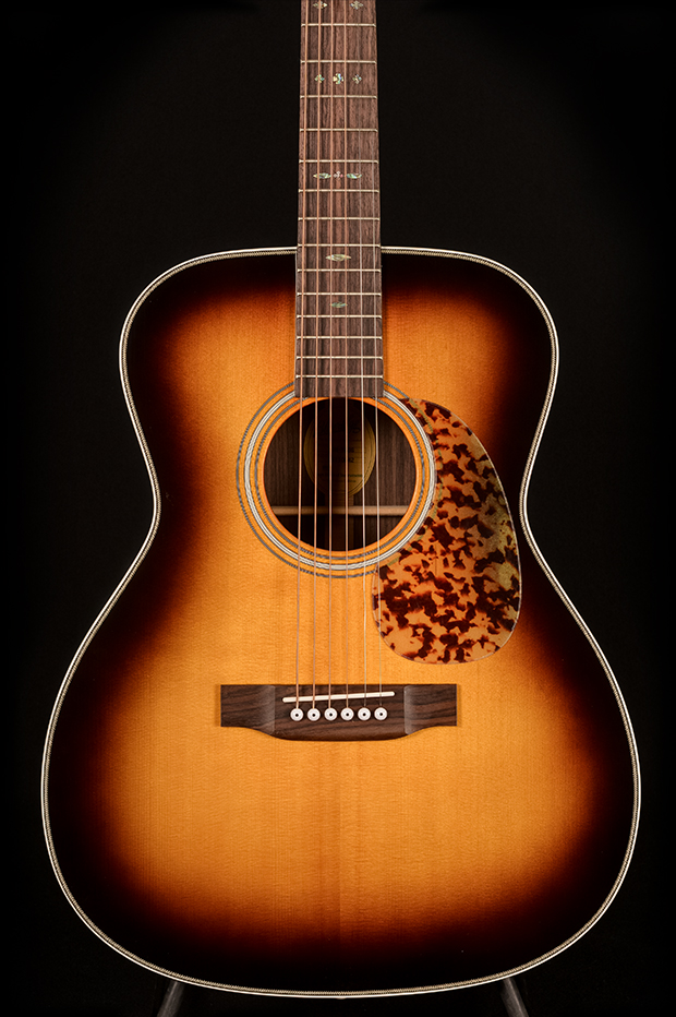 - Distinctive herringbone marquetry, tortoise style pickguard and snowflake position markers evoke vintage ’30s beauty