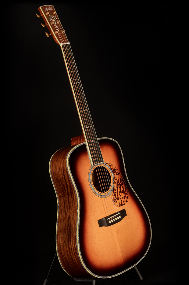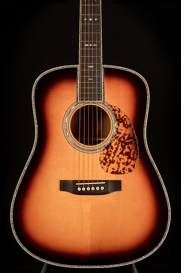 Our finest dreadnought guitar combines the rarest, most select woods with the most fastidious craftsmanship to create a guitar that even the finest artist would be proud to play! The secret of the tone is in the close-grained Adirondack spruce top wood and the forward-x brace parabolic bracing that gave the originals their legendary tone and volume.