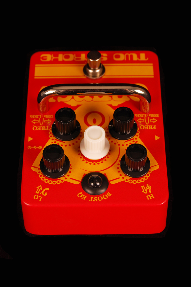 The Two Stroke Boost EQ is our take on the essential ‘clean boost’ pedal, but with even more versatility. Combining an active dual-parametric EQ and up to 12dB of output boost, the Two Stroke is the perfect tool for fine-tuning your sound or pushing your amp’s front end with unsurpassed control. Subtle Two Stroke tweaks can add an extra dimension to solos, whilst more aggressive use of the pedal’s EQ can sculpt entirely new sounds. Use the Two Stroke to add an extra channel to your amplifier or re-voice your guitar’s pickups completely. Crank the high mids to jump through the mix, cut the low end to remove the woolliness that normally occurs with traditional boost pedals, or leave the EQ flat to hear more of what you already like.