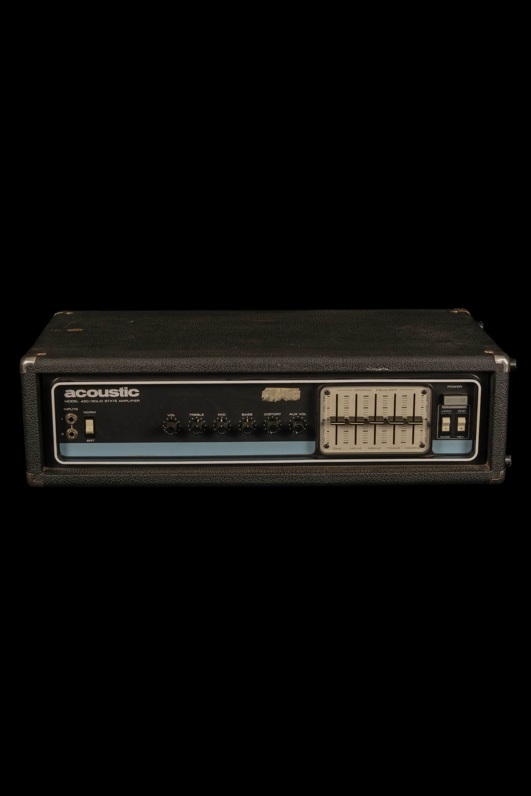 The Acoustic Model 450 is a 1970s solid-state amplifier head from Acoustic Control Corporation, a California brand that built some of the most widely used high-power bass rigs of the era. Acoustic’s touring systems in the late 1960s and 1970s were known for reliability, volume, and a clear, fast solid-state response.