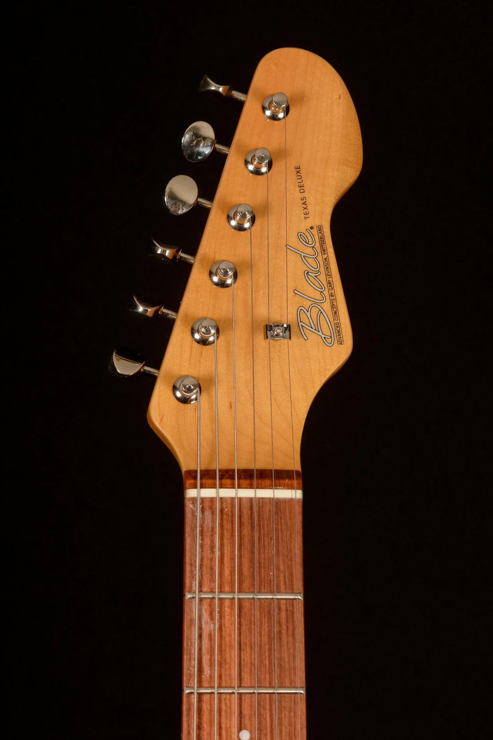 Born in the workshop as the logical result of simplifying truss rod adjustment, the Levinson EZ-Access neck rod has been a standard feature on Blade® guitars since 1987. By simply removing the Levinson imprinted cover at the 22nd fret the neck rod tension can be adjusted to compensate for seasonal humidity changes affecting your action.