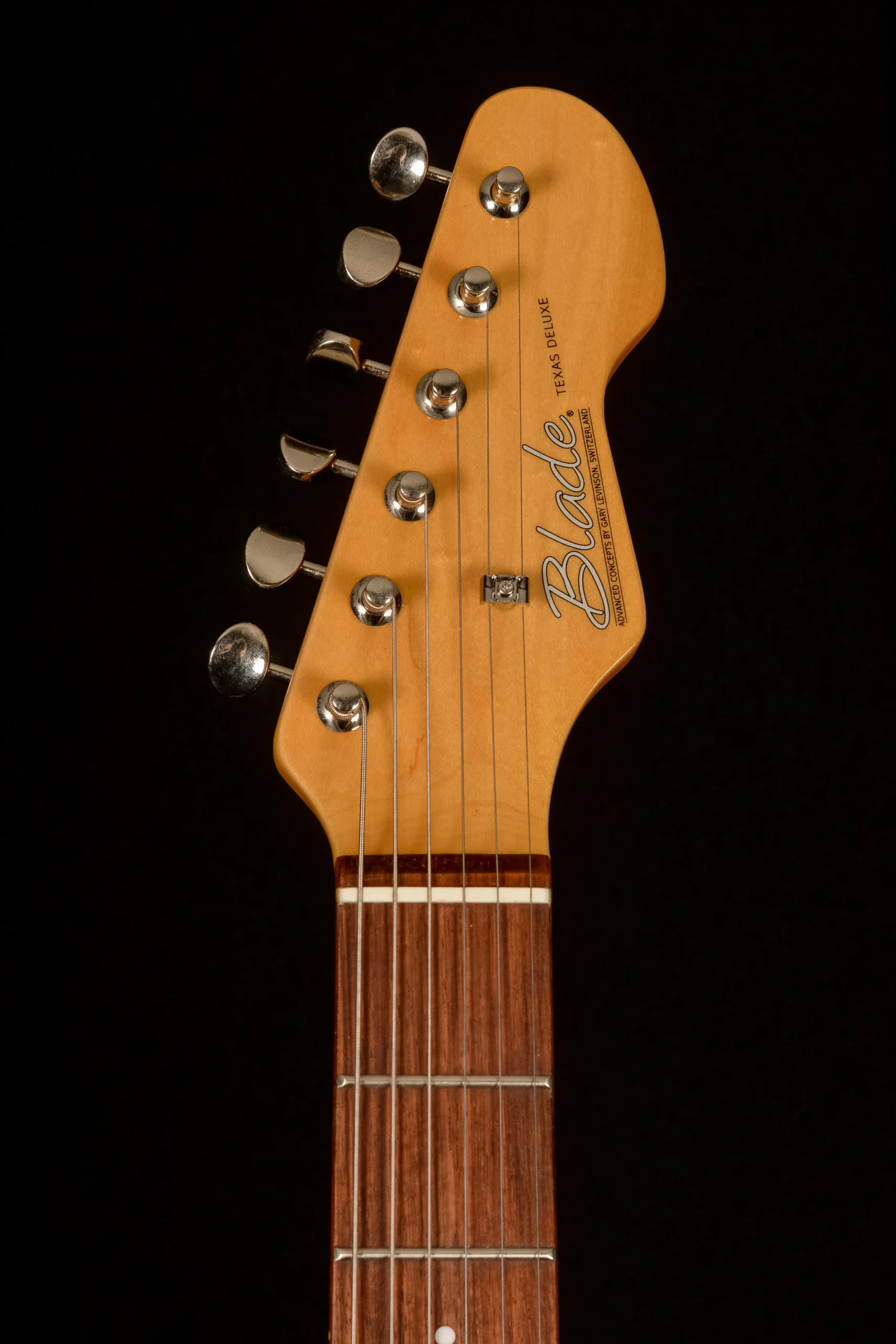 Born in the workshop as the logical result of simplifying truss rod adjustment, the Levinson EZ-Access neck rod has been a standard feature on Blade® guitars since 1987. By simply removing the Levinson imprinted cover at the 22nd fret the neck rod tension can be adjusted to compensate for seasonal humidity changes affecting your action.