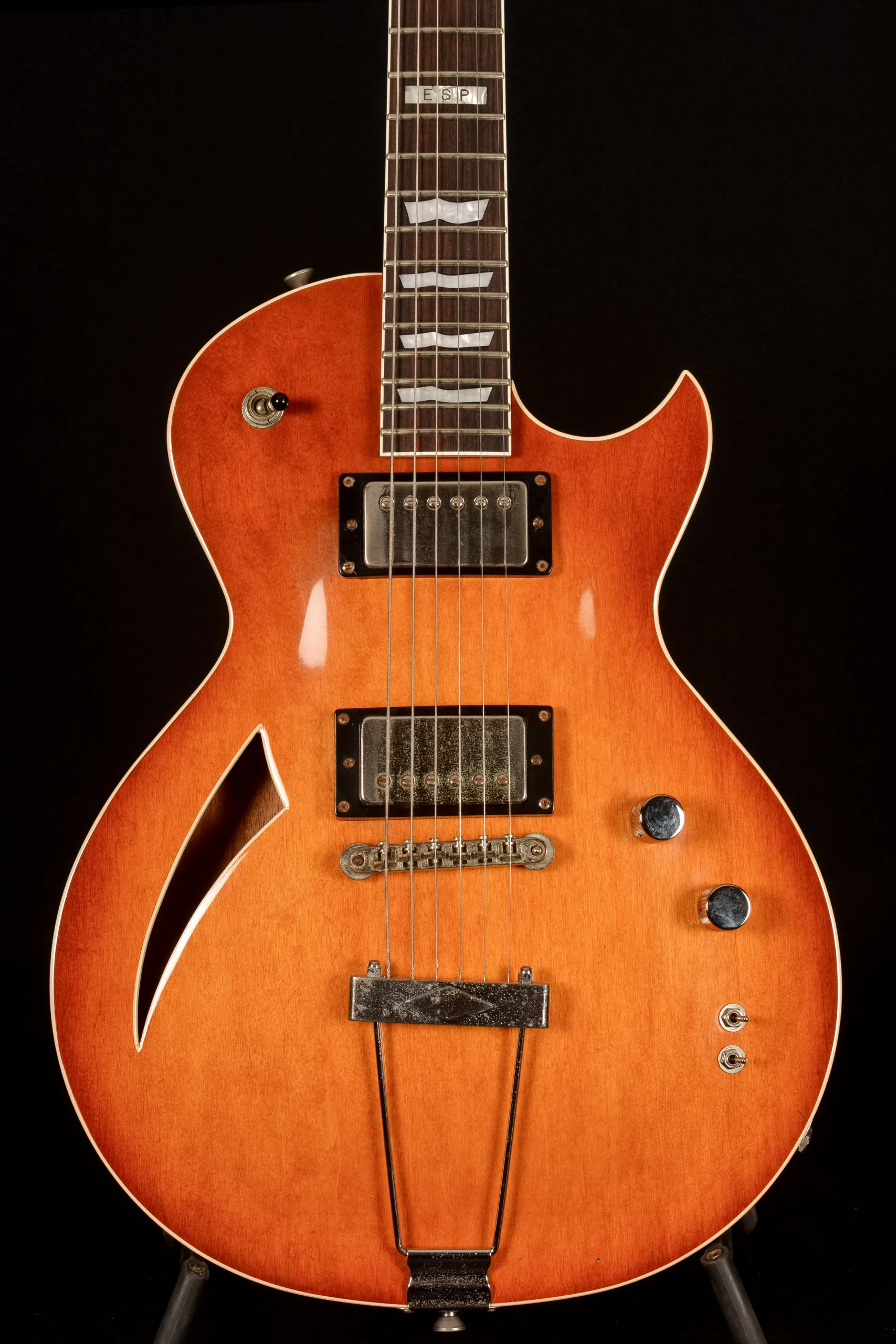 This 1995 ESP Eclipse Hollowbody in sunburst is firmly in that less-common corner of the Eclipse family. It’s a different flavour of Eclipse without drifting into fully jazzbox territory, and it stands out if you want something familiar but not standard.