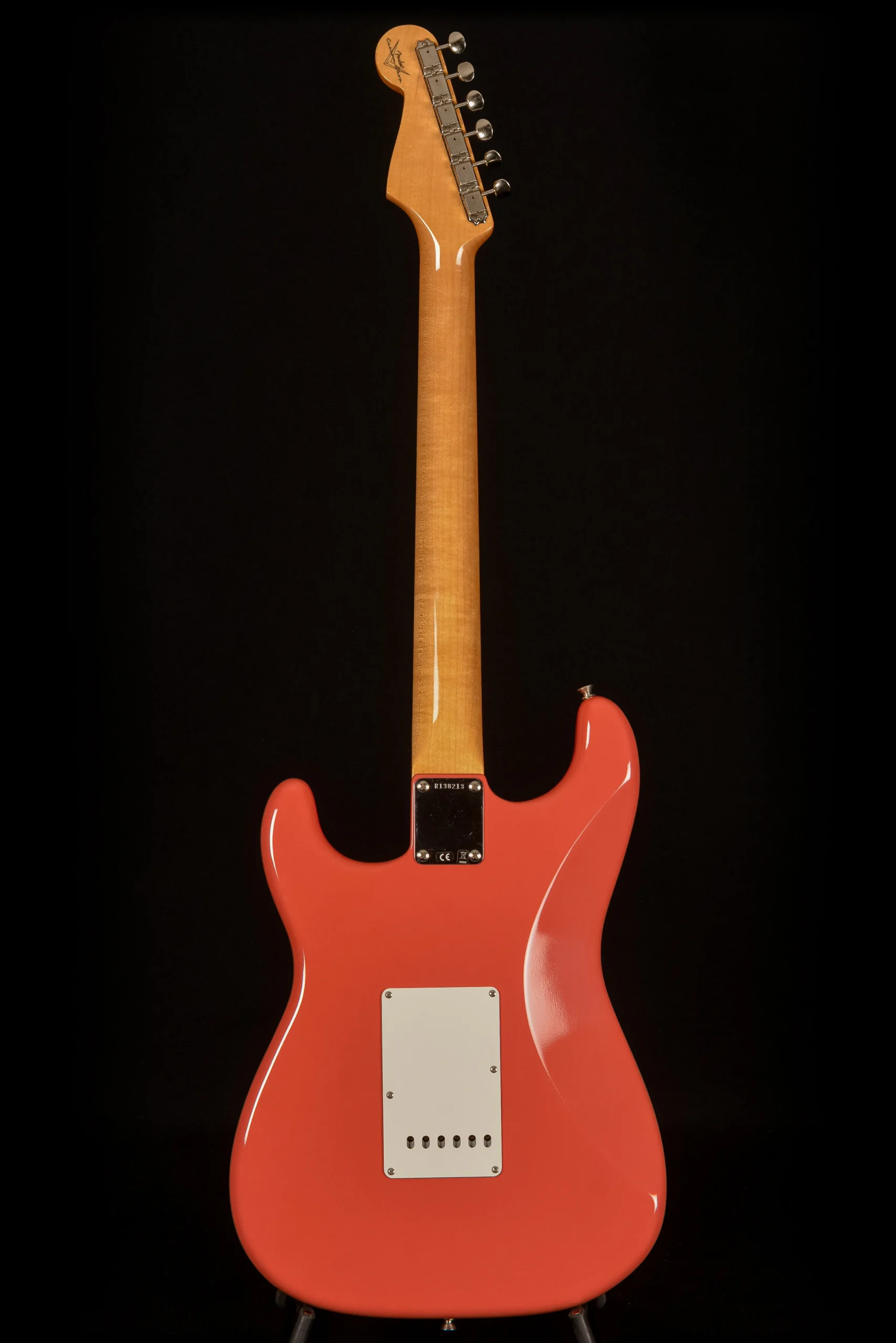 Other features found on this guitar include a 2-piece select alder body, tinted rift-sawn maple neck with ’59 “C”-shaped neck profile, 21 medium vintage frets, Custom Shop hand-wound ’59 Strat single-coil pickups, 5-way switch, vintage wiring, 3-ply mint green nitrocellulose pickguard, American Vintage synchronized tremolo bridge, bone nut, wing string tree and vintage-style tuning machines.