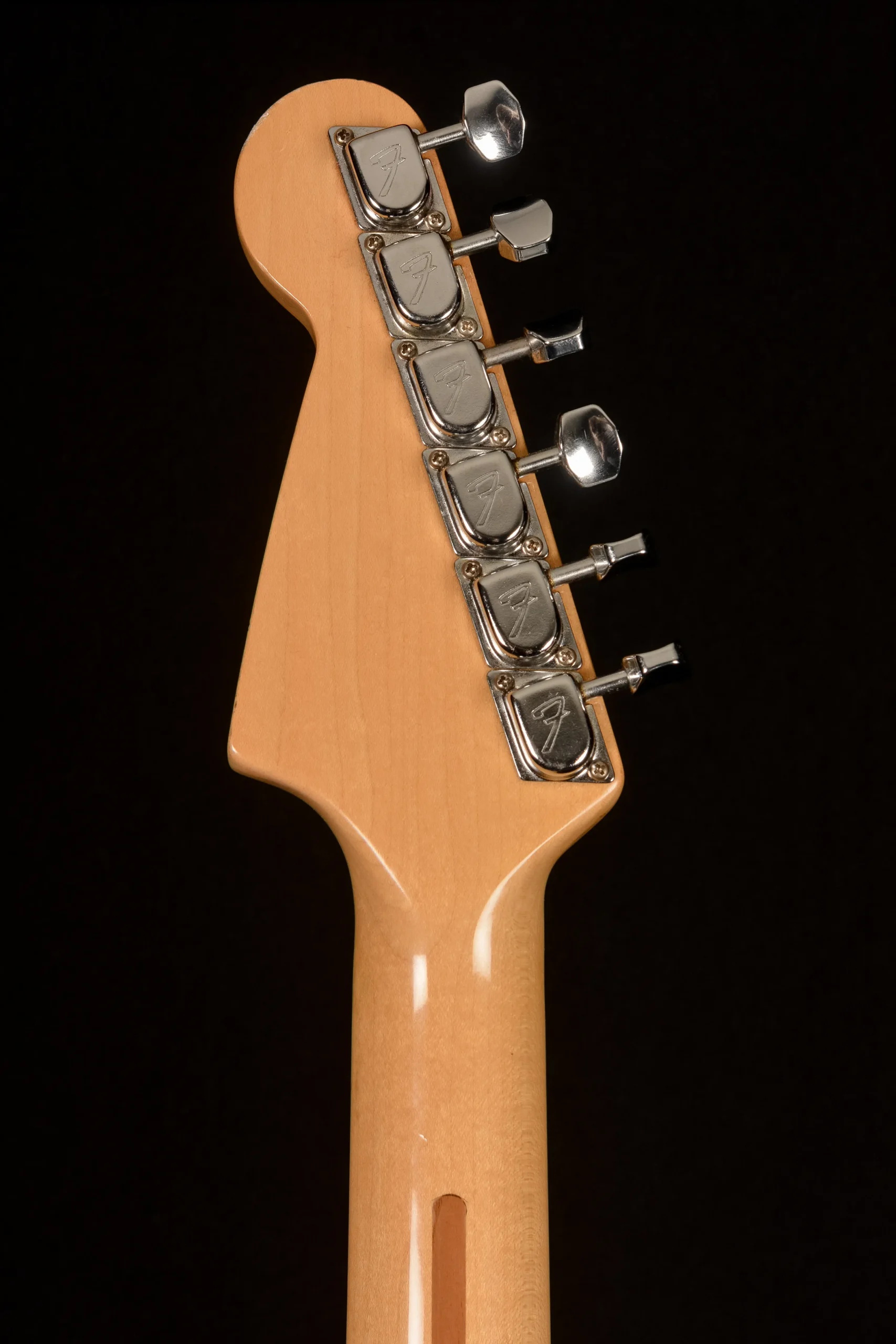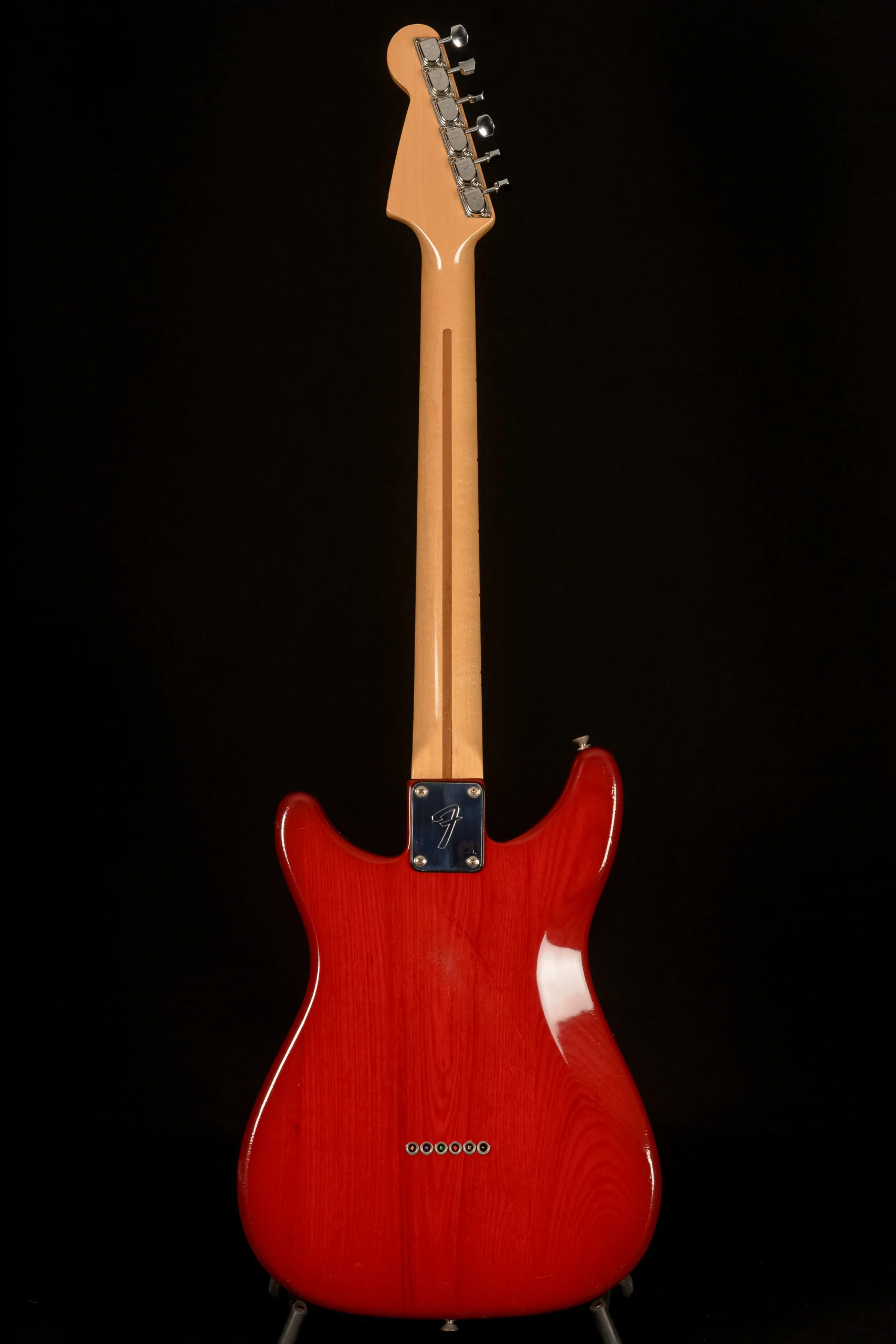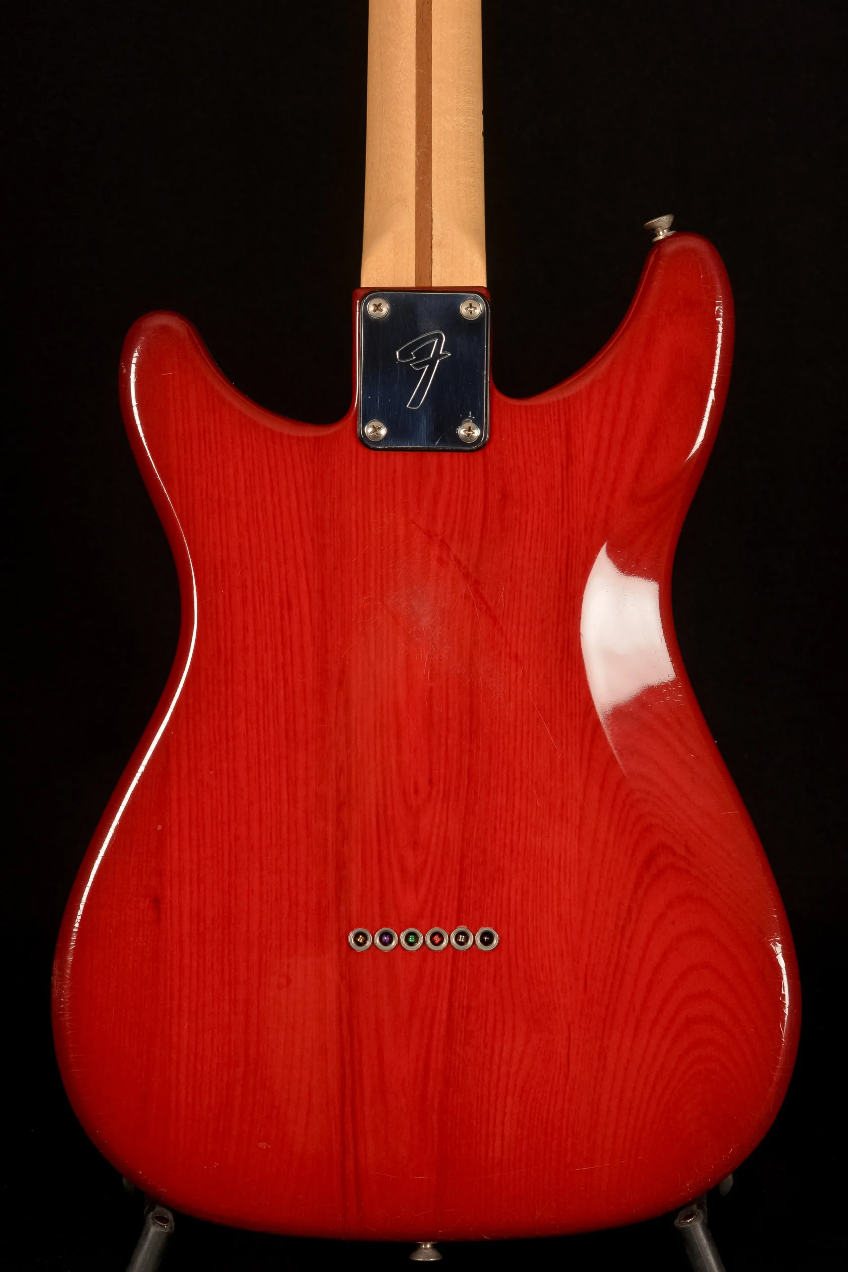 - Neck plate: Fender “F” plate