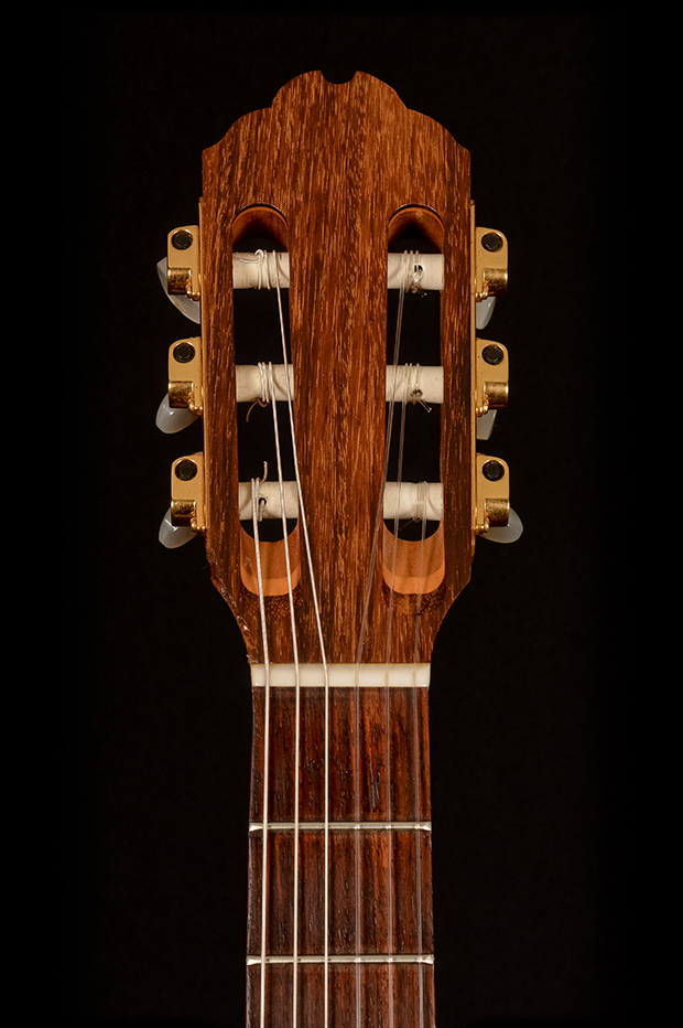 - Hardware: Slotted headstock; three-per-side gold tuners