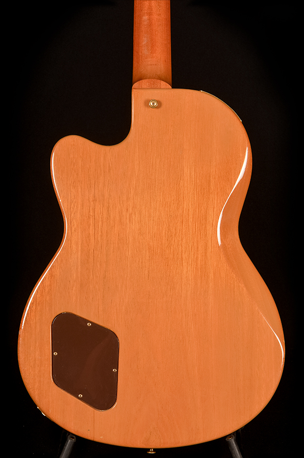 - Body: Chambered mahogany body, single cutaway; solid spruce top; multi-ply binding
