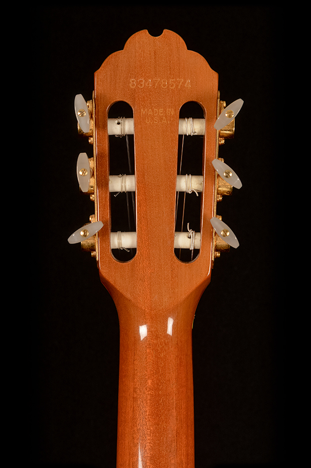This 1988 example has standard playwear, but frets are like new. There’s some light finish flaking along the binding. Weight is 3600g. If you want a stage-ready nylon from the era when amplifying acoustics was still a moving target, this is one of the key designs.