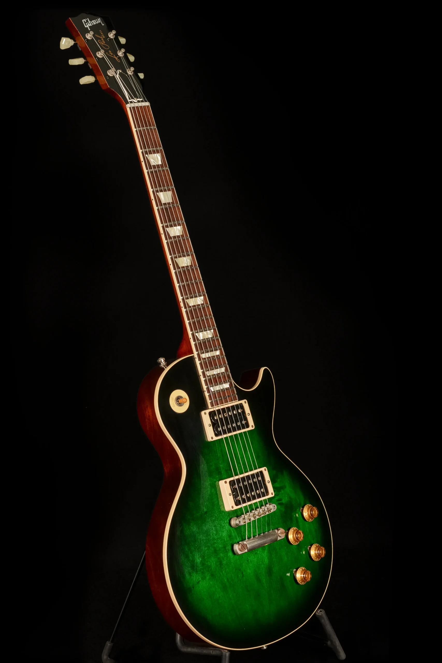 Gibson’s 2018 Custom Shop Les Paul Slash Anaconda Burst Plain Top is a limited run based on the green Les Paul Slash toured heavily in the mid-2010s. Built in the Custom Shop’s Historic department with 1950s style construction and Slash’s own neck specs and electronics, it combines classic late 50s Les Paul features with his preferred feel and output. This Plain Top version was limited to 250 guitars worldwide, all with the distinctive Anaconda Burst finish over a non figured maple top. This guitar is serial number 247.