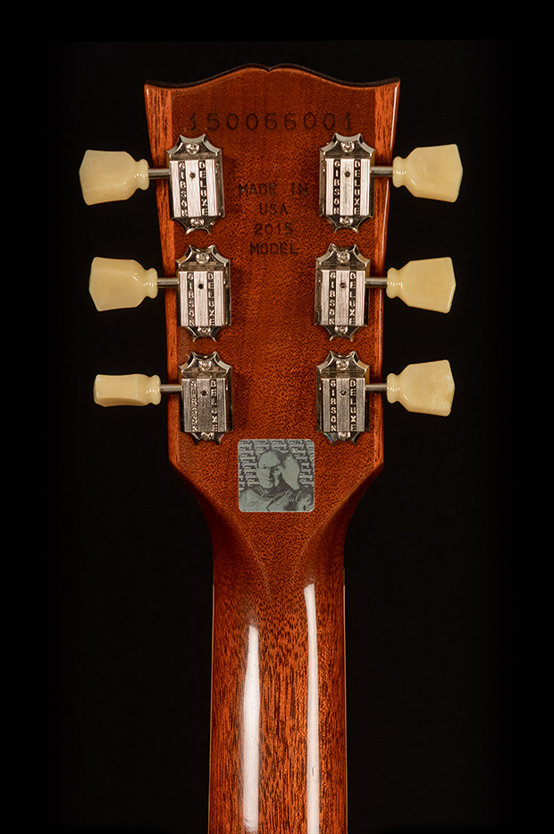 Built in Gibson USA’s centenary year for Les Paul’s birth, this 2015 Gibson Les Paul Standard 100th Anniversary carries the “Les Paul 100” headstock script and the Les Paul hologram on the rear. The 2015 model year introduced several factory updates across the USA range, including a Zero Fret Adjustable Nut, wider fingerboard, removable pickguard without screws, modern weight relief, Burstbucker Pro pickups, and revised electronics with coil-split, phase, and pure-bypass options.