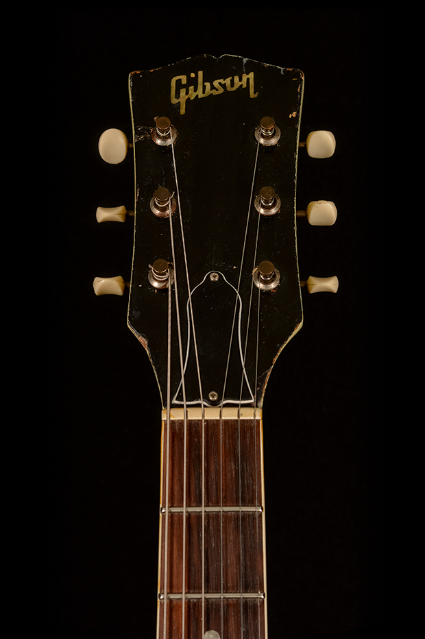 - Headstock: Black veneer with gold Gibson logo, 3-per-side tuners