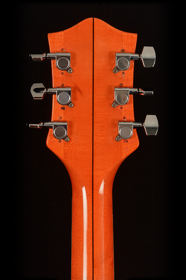 Frets are in perfect condition, neck feels great and guitar plays well. Standard playwear for its age but no cracks or breaks. The original G-branded Grover tuners have been replaced. The old screw holes are still visible but have been filled cleanly.