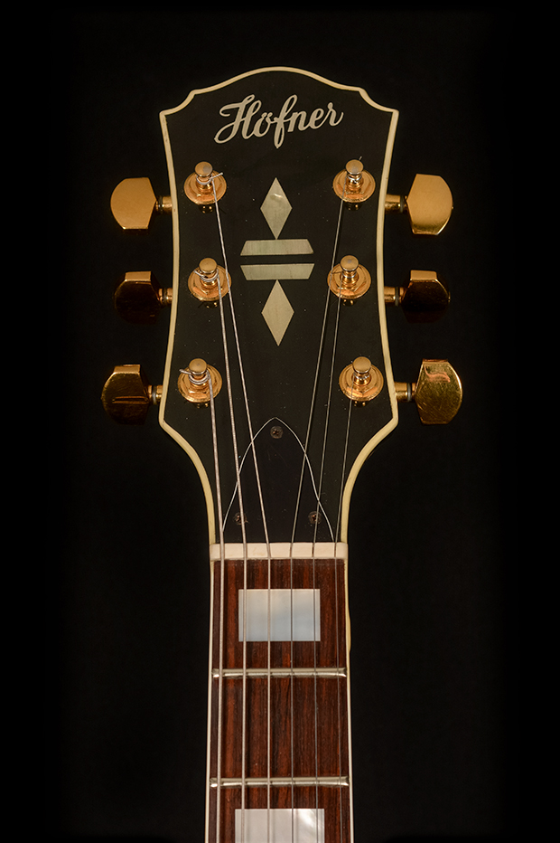 Germany’s answer to the famous 335 model, the Höfner Nightingale used only the best materials and hardware available at the time for a proper boutique experience. High quality German-made Schaller tuners, Schaller roller bridge and Schaller fine-tuning tailpiece on a laminated maple double-cutaway body with a 1-piece maple neck.