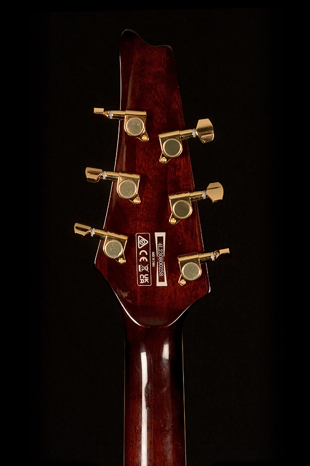 The Flamed Maple top features offers a beautiful wood grain and the Okoume body provides a bright and solid sound.