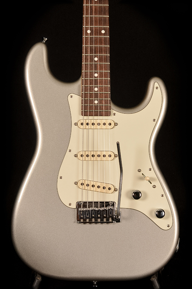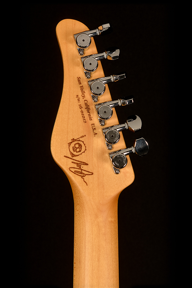 - Custom C-shaped maple neck with rosewood fingerboard and Jescar premium German silver frets