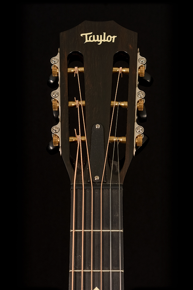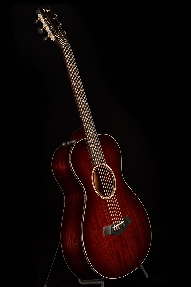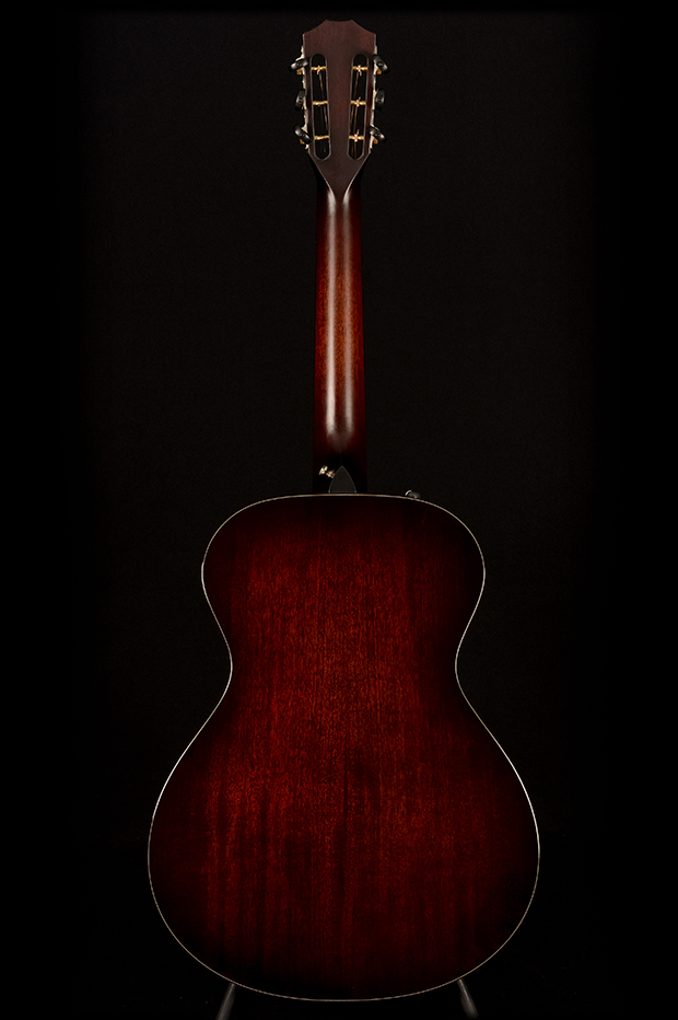 The 522e 12-Fret is Taylor’s all-mahogany Grand Concert built around a short 24 7/8″ scale and a 12-fret neck-to-body joint.